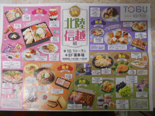 開催されている物産展に初日、行って来た。石川・富山・福井・新潟・長野の
